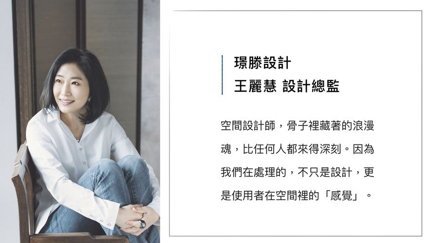「美,不會只有一種面貌。」這句話套用在 璟滕設計 王麗慧 設計總監 的作品上再契合不過,也因為認為「美是自然流露的」,因此總能在空間皮層上創造新奇多變的樣式,同時保留和諧、不造作的場域核心。如此的美學態度亦征服了義、英、美、韓、中、台等各大設計賽事,使總監蘊藏多年的藝術靈魂不斷於國際嶄露頭角,令人們看著總監力道飽滿的作品之餘,不禁開始想像她深藏未露的創作功底,將會在未來帶給我們什麼樣的美好風景!