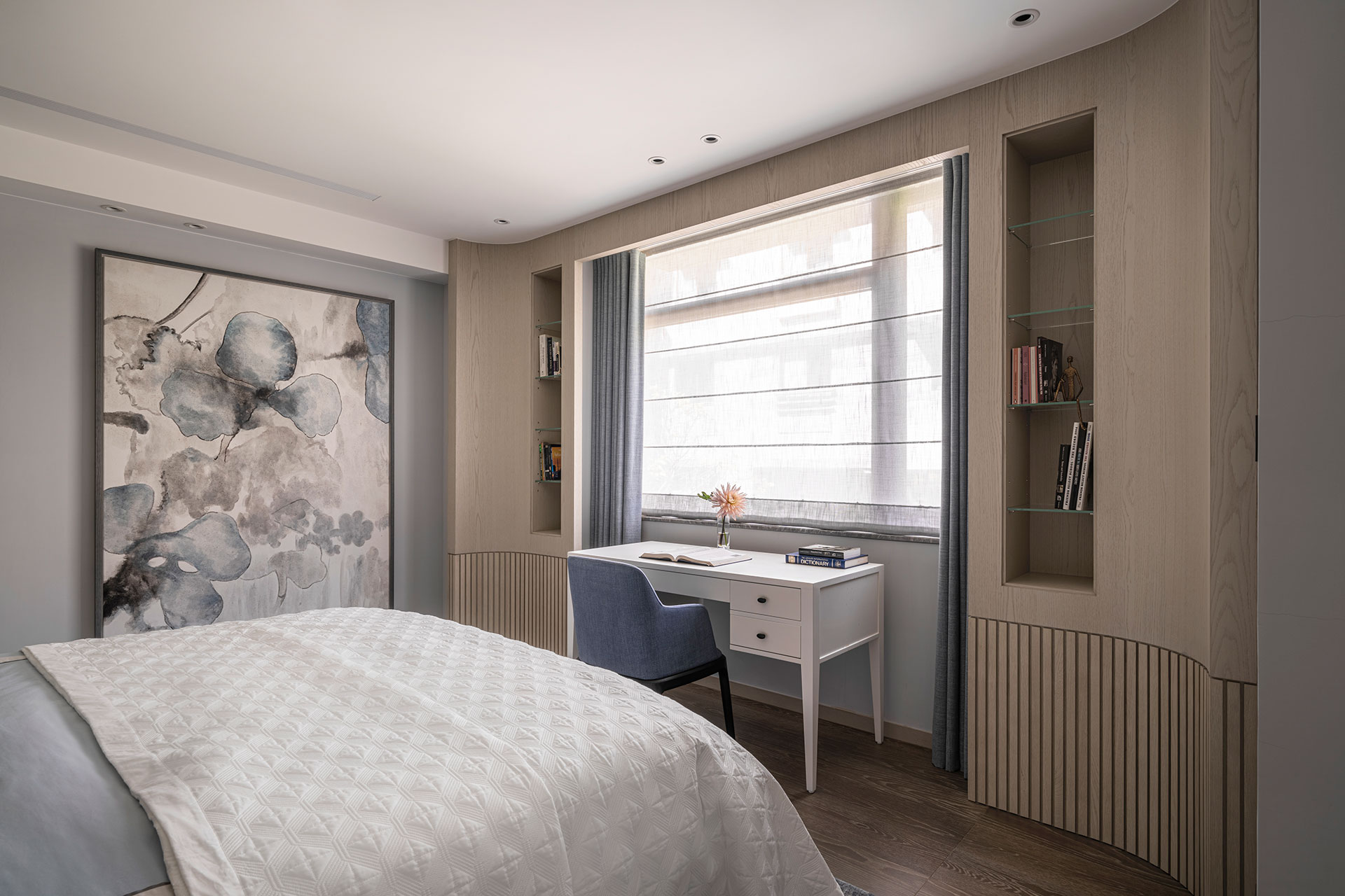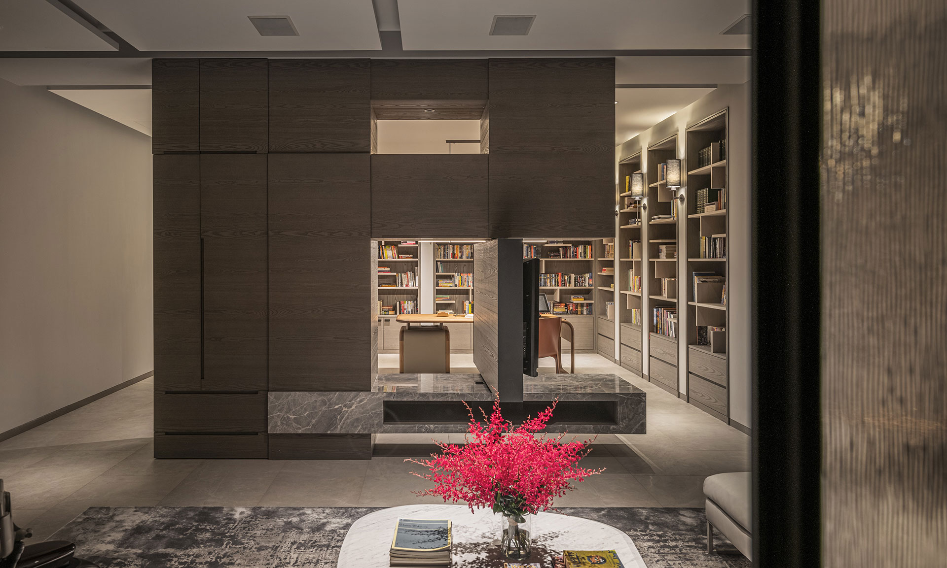 Light, melody, and scent of books flow in and permeate the room. A home is a gathering place of distinctive senses and aesthetics, a safe house that harbors the mind and the body, keeping storms and rains away from ordinary living.